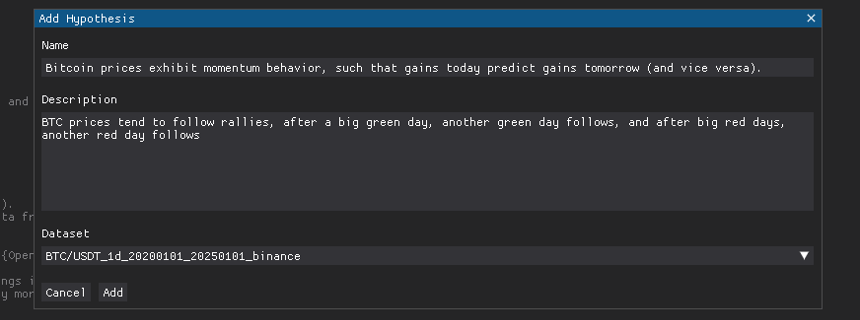 After that, head over the Research section, and create a new hypothesis, how should we name it?